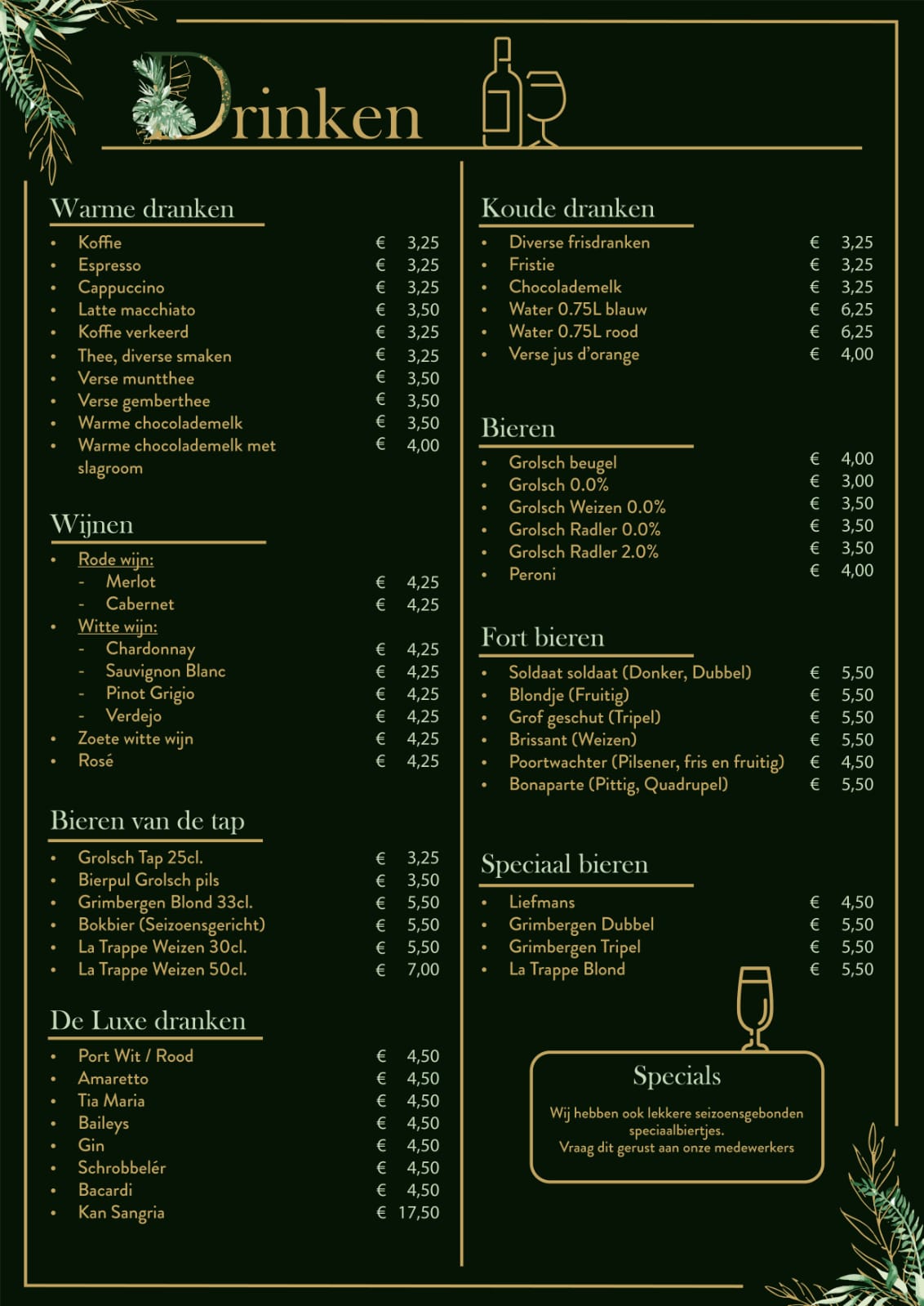 Het is genieten in Brasserie de Kletsmajoor onder de gewelven van de kazerne of buiten op ons pas nieuw ingerichte terras. Geniet van een lekkere lunch of een speciaal voor u gebrouwen fortbiertje of vier een feestje bij ons met uw familie of vrienden.